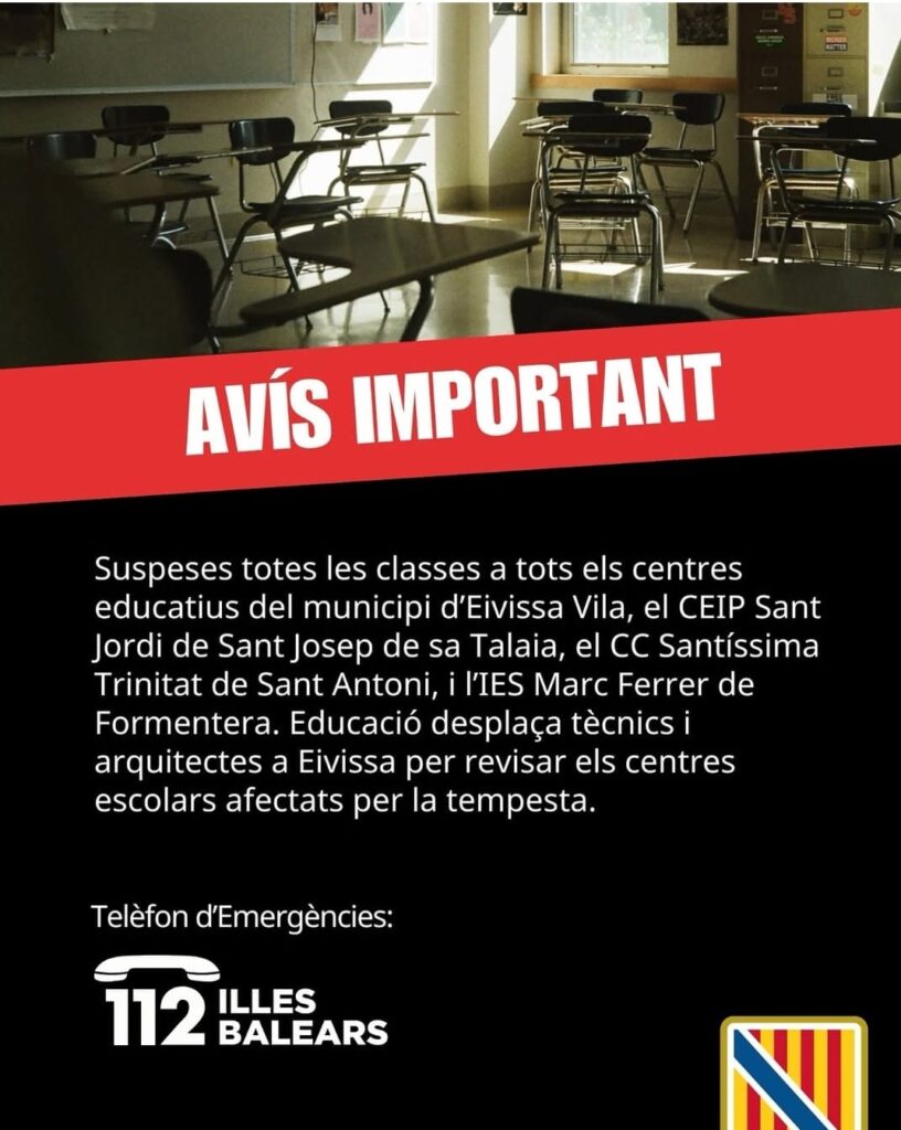 Mañana, miércoles 1 de octubre, se suspenden las clases lectivas y la escuela permanecerá cerrada por los efectos de la tormenta. El jueves se retomaran las clases con normalidad. Disculpad las molestias.